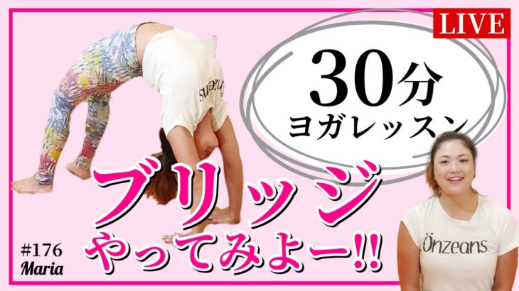 ブリッジやってみよう!下半身鍛える【毎週金曜夜30分 ヨガ 無料オンラインレッスン YOGAライブ配信 #176 】 – Maria