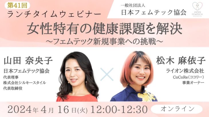 ウェルビーイング 2024.04.17 【第41回:ランチタイムウェビナー】女性特有の健康課題を解決~フェムテック新規事業への挑戦~ #フェムテック #フェムケア #ウェルビーイング #日本フェムテック協会 続きを読む